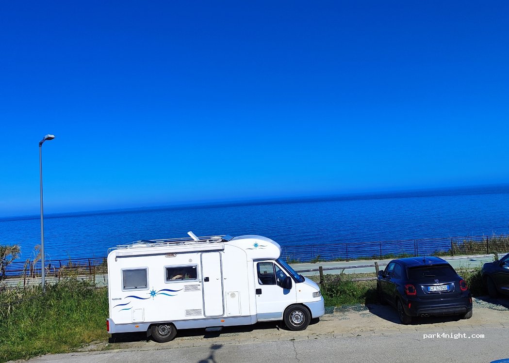 Posteggio in una zona tranquilla possibilità di accesso diretto alla spiaggia tramite una scala. Il posteggio è completamente gratuito, e durante la notte è molto silenzioso tranne qualche macchina che passa ogni tanto.