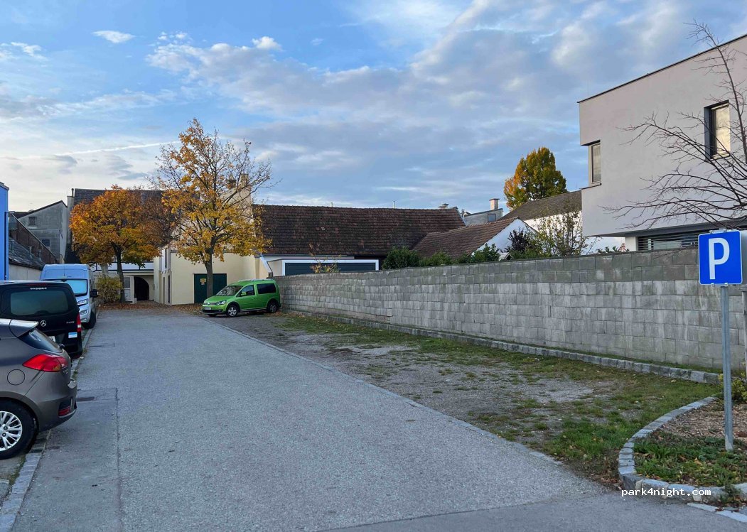 Öffentlicher Parkplatz in der Nähe der Kirche und dem Rathaus. Nur ca 20 - 30 m zur Dorf- Hauptstraße mit zahlreichen Heurigen. Nächtigung wird geduldet. Wir haben eine sehr ruhige Nacht verbracht. Der Platz ist jedoch eher für kleinere Mobile (zB Kastenwägen). Es sind für ca 3 Vans Längsparkplätze verfügbar. Ca 200 m zum kleinen Dorfladen, der wochentags bereits um 6:30 öffnet (zumindest war das bei unserem Besuch so). Idealer alternativer Standort zum ebenfalls beschriebenen Parkplatz in Sooß.