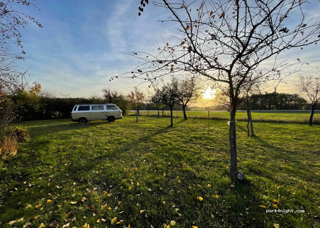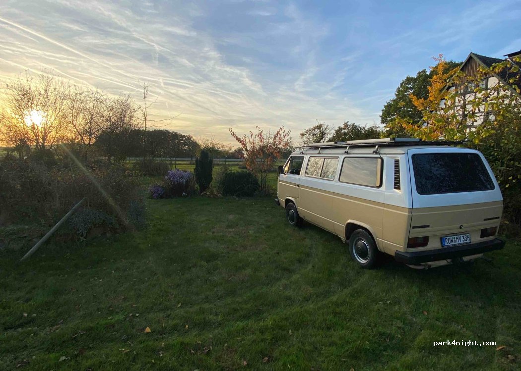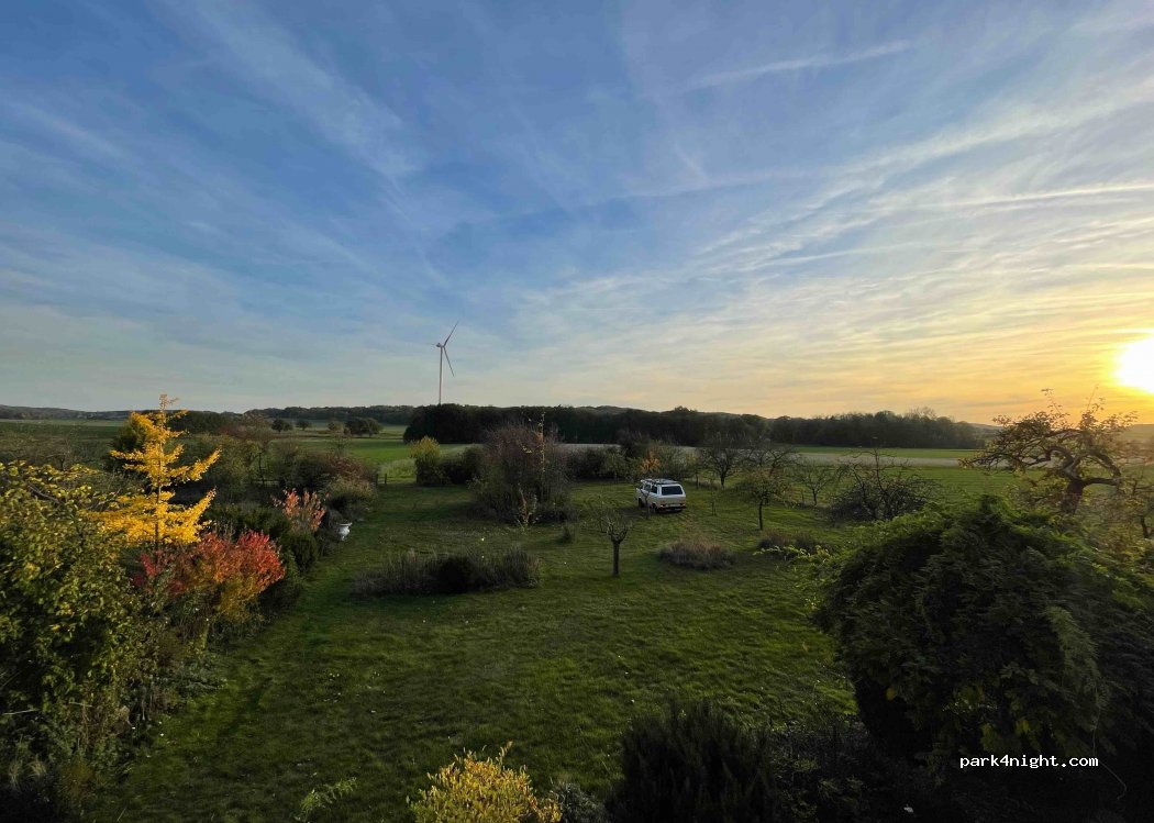 Nous vous proposons 3 places de parking sur notre pelouse/jardin privé avec une vue magnifique. Libre choix de l'espace entre prairies, champs et arbres fruitiers (fourniture gratuite de fruits inclus ;-)) Bon point de départ pour des randonnées, des balades à vélo, des visites touristiques (Varusschlacht, Schelenburg) ou une promenade dans Osnabrück (20 minutes). Eau douce et foyer avec bois de chauffage sur place. Merci de vous inscrire à l'avance par téléphone ou message !