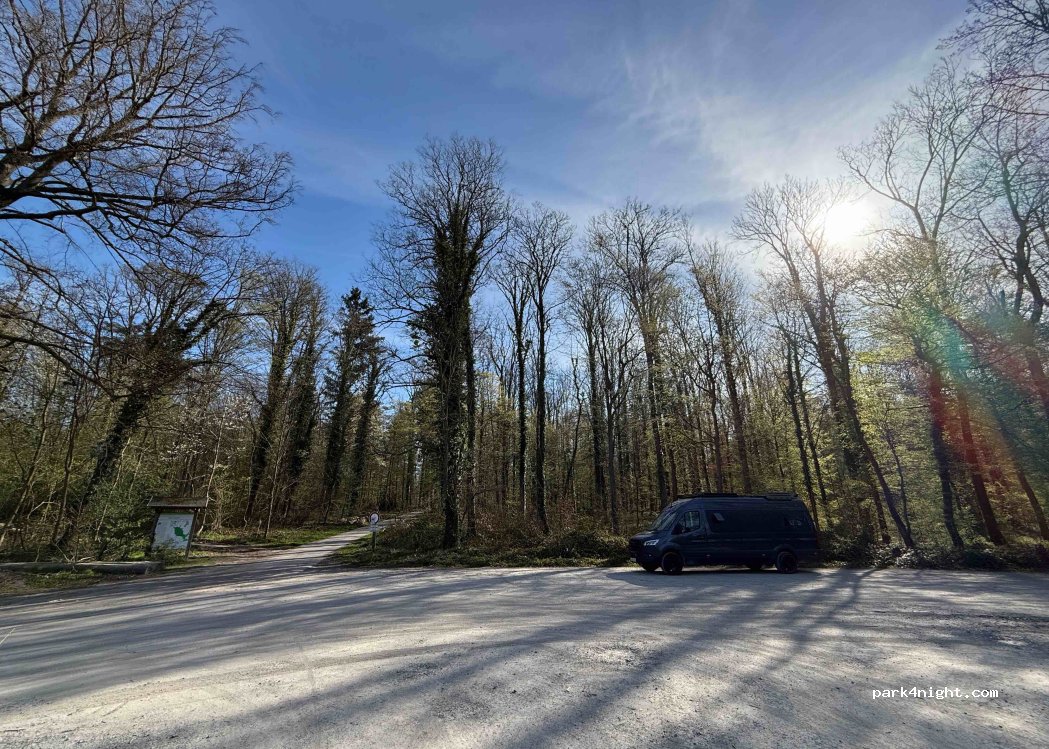 Ein simpler Parkplatz ohne irgendwelche Einschränkungen, aber auch ohne Services. In der Nacht trotz Straßennähe ziemlich ruhig. Wir standen Ende August mit noch drei anderen Wohnmobilen dort. Guter Ausgangspunkt für einen Waldspaziergang.