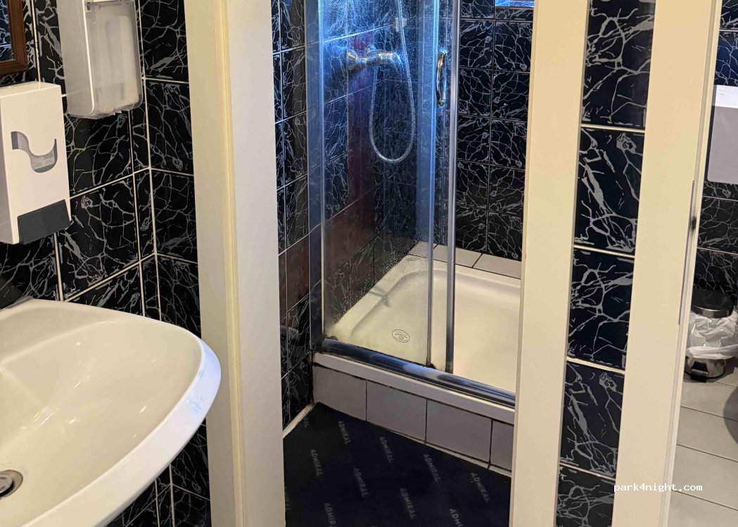 Fantastic for overnight stay. Showers are hot and powerful. Bar area with Kids trampoline and play area