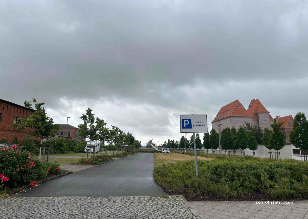 Een prachtige plaats en gratis,ook ad overkant nog eentje,als je geen service nodig hebt.Daarnaast is del betalend mr heb je electriciteit.Mooie oude industriële gebouwen en vlak ad Elbe.