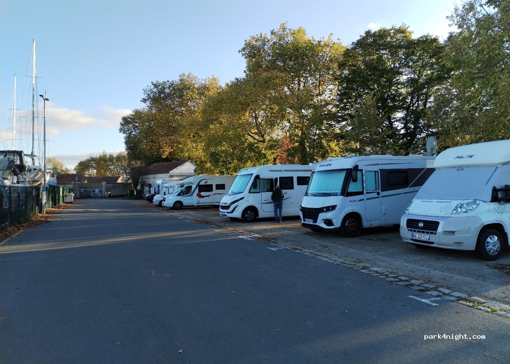 Emplacements de bonnes tailles et très bien placés pour visiter la corderie royale et Rochefort. Arrivé le soir, les salles de spectacles et de concerts, qui sont à proximité,amènent beaucoup de monde qui se garent sur les emplacements réservés aux campings cars. Je trouve cela inadmissible. On nous chasse de parking qui nous sont pas réservés mais il n y a personne pour faire respecter l inverse