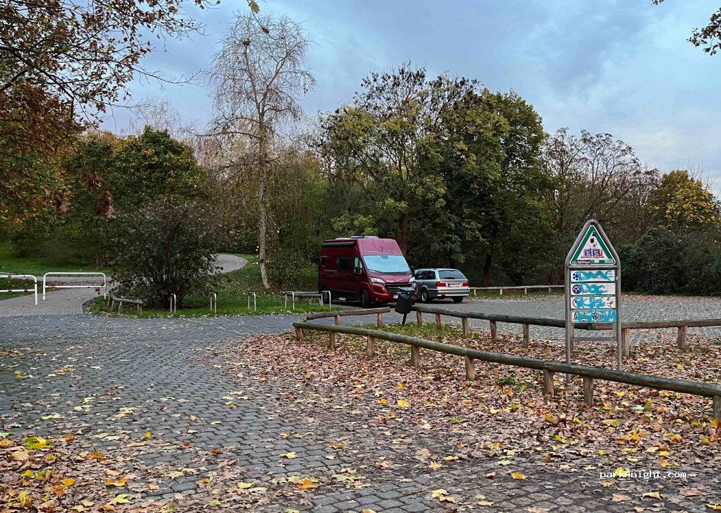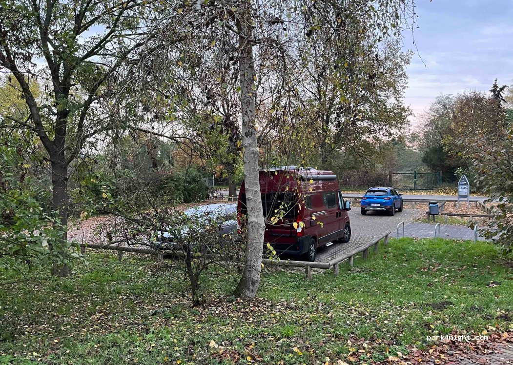Parking très bien situé au parc "Dörferblick". Fréquenté par les propriétaires de chiens, on n'entend pas l'aéroport BER à 5 km. Très tranquille. Pas d'interdiction des mobil-homes.