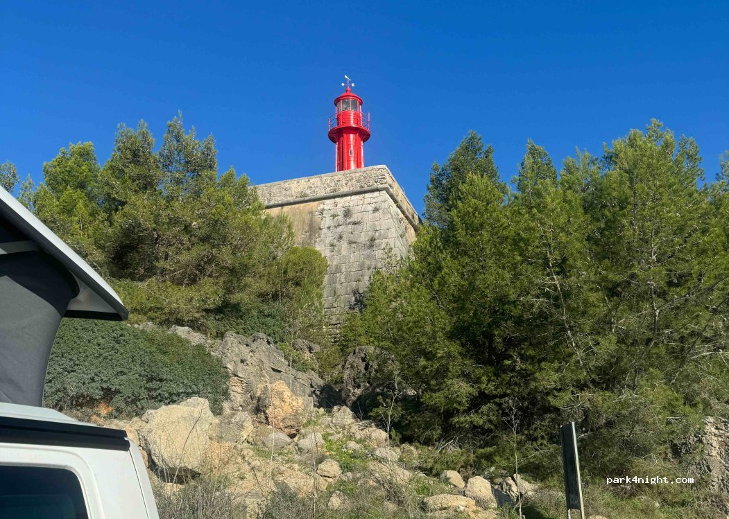 Muy bien para pasar una noche. Espacio para 5-6 vans aproximadamente en llano. Al lado de un faro y del puerto, frente al mar. Hay un contenedor de basura cerca. Pasamos una noche tranquila, sin luces que molestasen. Se escuchaba de lejos el ruido de un generador.