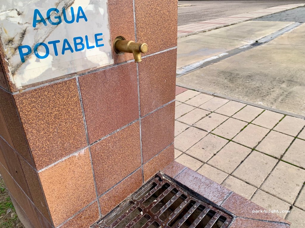 Area con todos los servicios, hay sitio para bastantes vehiculos y en caso de llenarse, 30 metros por encima esta el aparcamiento de las piscinas municipales que tambien dejan aparcar. Las piscinas solo están abiertas en verano.
