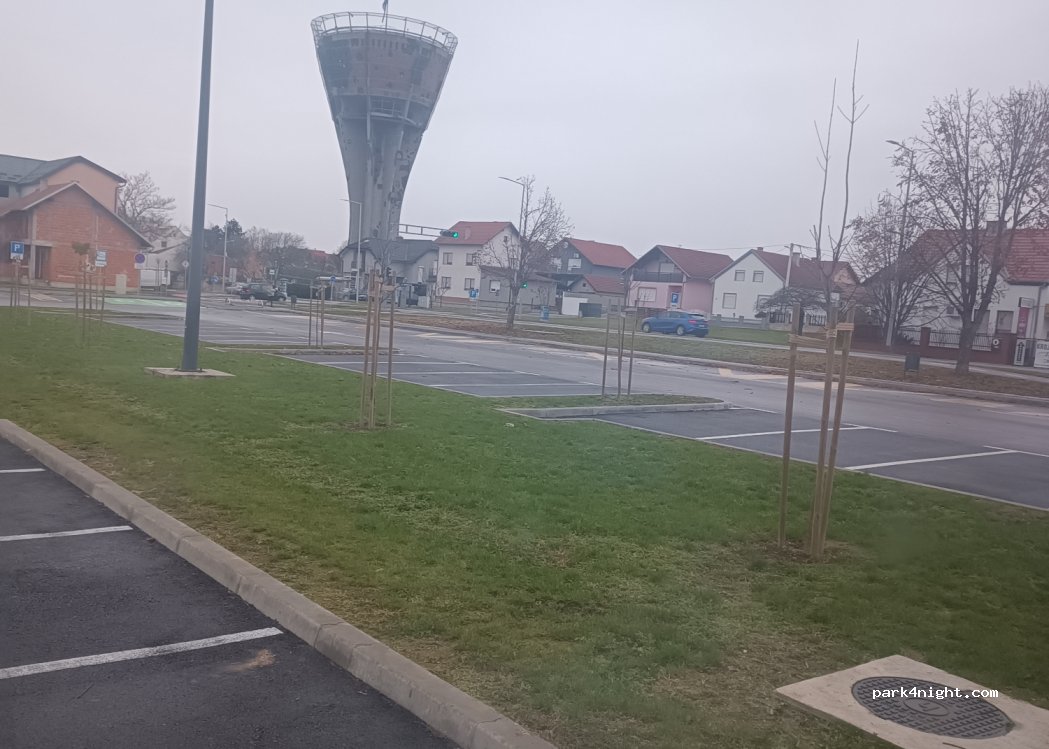 Large parking lot near the Vukovar water tower. perfect for one night. the road is close but not very busy.