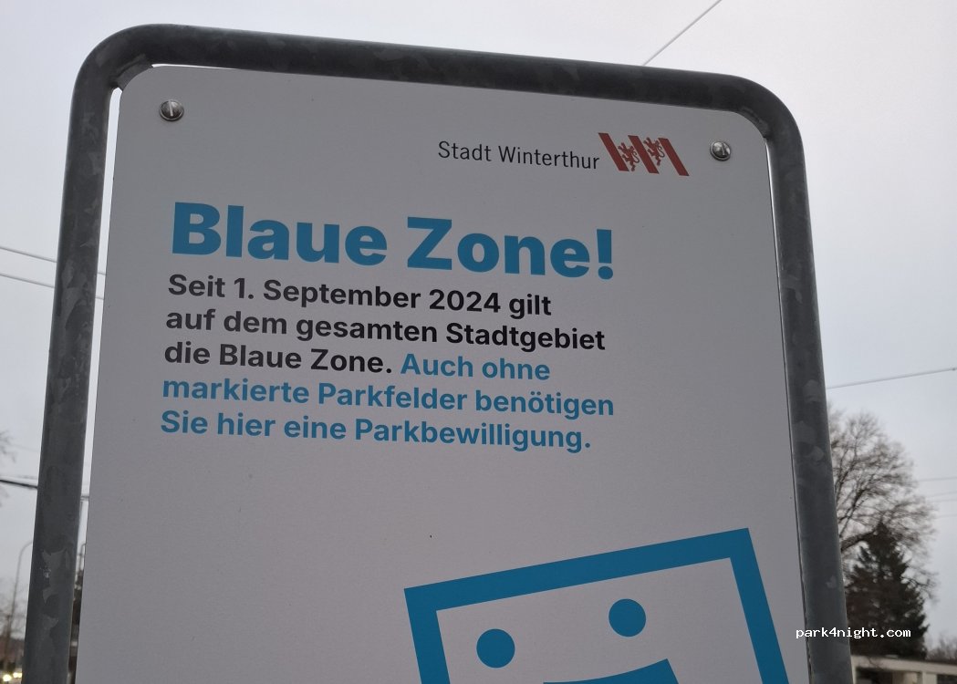 Kostenloser Parkplatz, Tag und Nacht, blaue Zone
