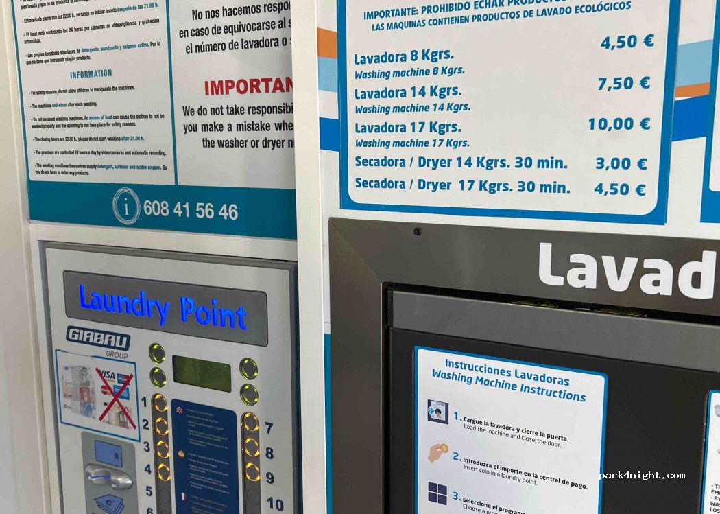 Sehr sauber und man kann die Waschmaschine auch mit Karte bezahlen. 7,50€ für eine Wäsche. Die Trockner kann man aber nur bar bezahlen?? 3-4€ pro Trockner.
