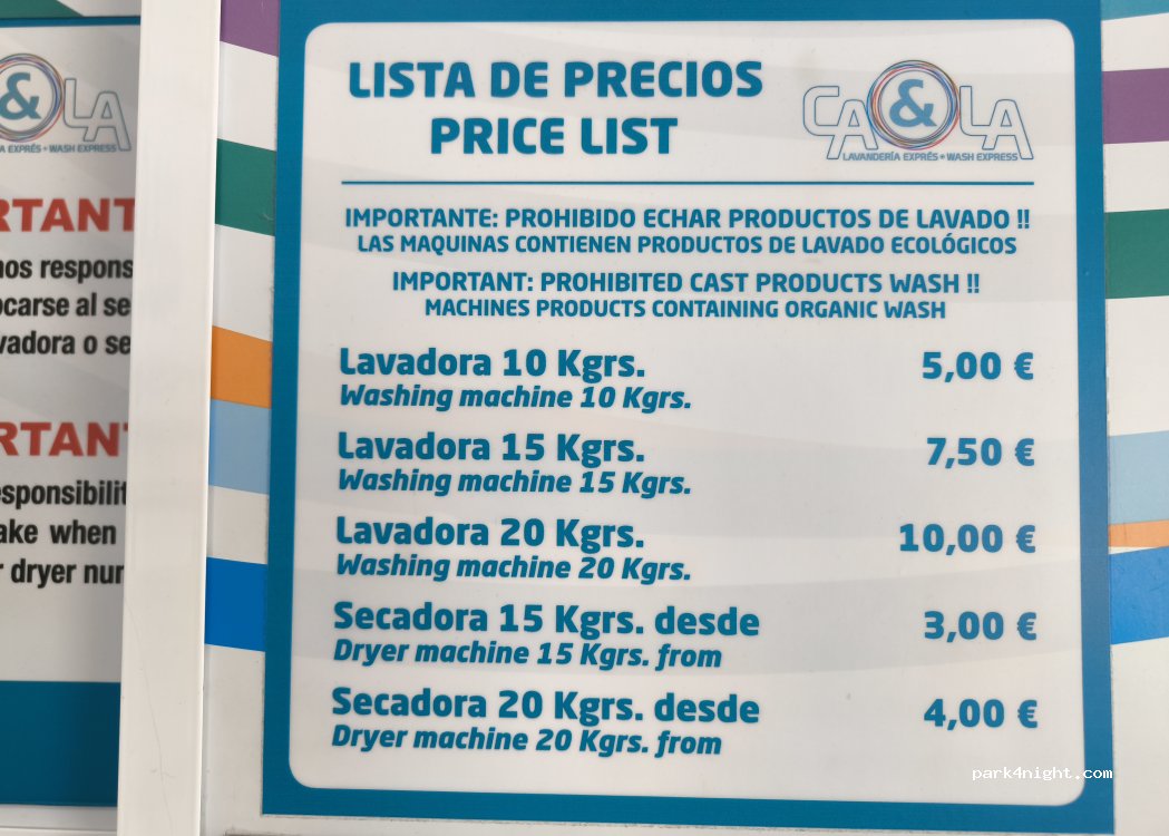 5€/10kg 10€/20kg washer 3€/15kg 4€/20kg dryer