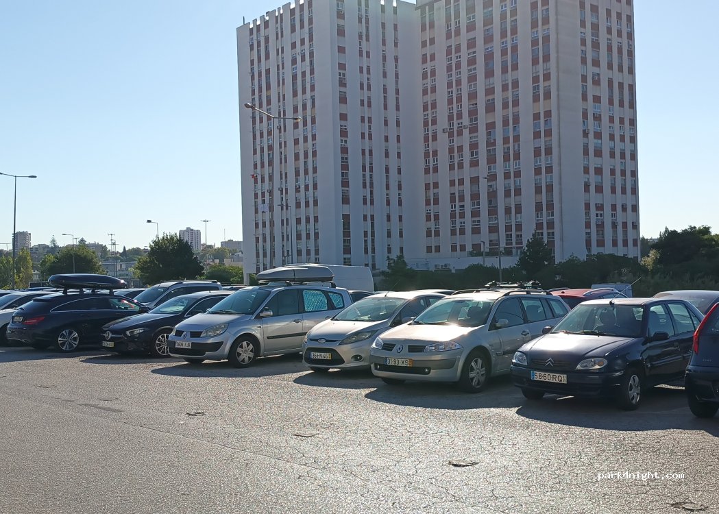 enorme parcheggio gratuito con spazi ideali per auto e minivan, nel caso hai un camper puoi posizionarti con lo sbalzo posteriore sull'erba. sono presenti molti rifiuti, qualche auto senza ruote o bruciata ma essendo uno degli unici gratuiti a Lisbona non si può pretendere molto