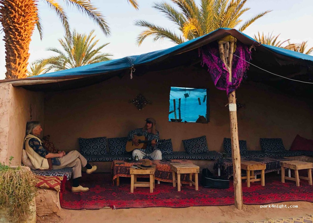 Dessert Madani est un centre de permaculture proche de M'Hamid. Dessert Madani aide les populations locales avec des emplois et des connaissances sur l'irrigation. Dessert Madani dispose de chambres, d'une auberge et d'une piscine naturelle. C'est comme une oasis paradisiaque où la nature est en tête. Madani et Tiny (également connu sous le nom d'Aisha) organisent des festivals de permaculture sur le camping. La piscine, la terrasse sur le toit avec vue sur le dessert et le four à pizza sont en cours de construction. L'endroit est inspirant et relaxant à la fois. Madani parle anglais, français, espagnol et arabe et Tiny parle anglais, néerlandais et allemand. Il faut un 4x4 pour arriver sur place. Si vous n'avez pas de 4x4 vous pouvez appeler et Madani vient vous chercher à M'Hamid.