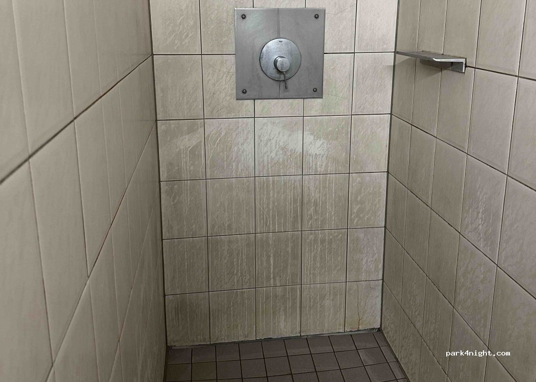 Dusche mit WC, Steckdose und Föhn, ist sauber, 4€ bezahlt, Zeit ist unbegrenzt.