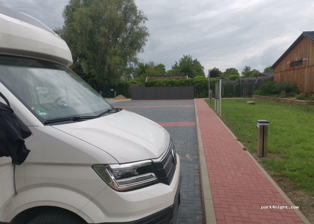Fint anlegg. Video overvåket, virker trygt. Sterk,rask WiFi. Vi var eneste bil i natt. Hyggelig, service innstilt innmelding i resepsjonen badeanlegg, der man har tilgang toalett. Buss til byen dekkes av Harz turistskatt. Sportsanl trekker en del barn og unge hit om kvelden. Plaget ikke oss. Etterhvert stilnet også gjøing fra noen av de (alfor) mange hunder i dette landet og natta ble helt stille