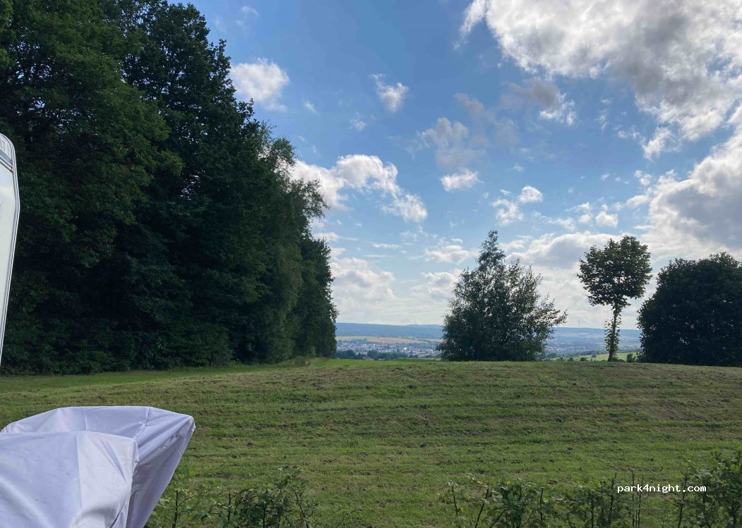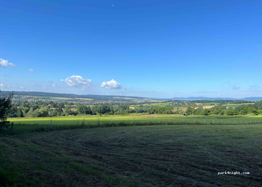 Wanderparkplatz. Für eine Nacht in Selbstversorgung perfekt. Viel Platz. Eben. Direkt an der Landstraße. Aber die Plätze hinten am Wald sind einigermaßen ruhig. Nicht weit von der BAB.