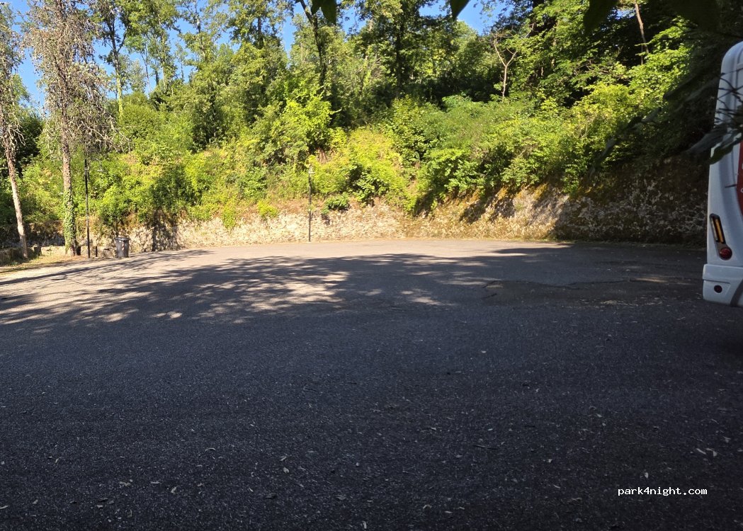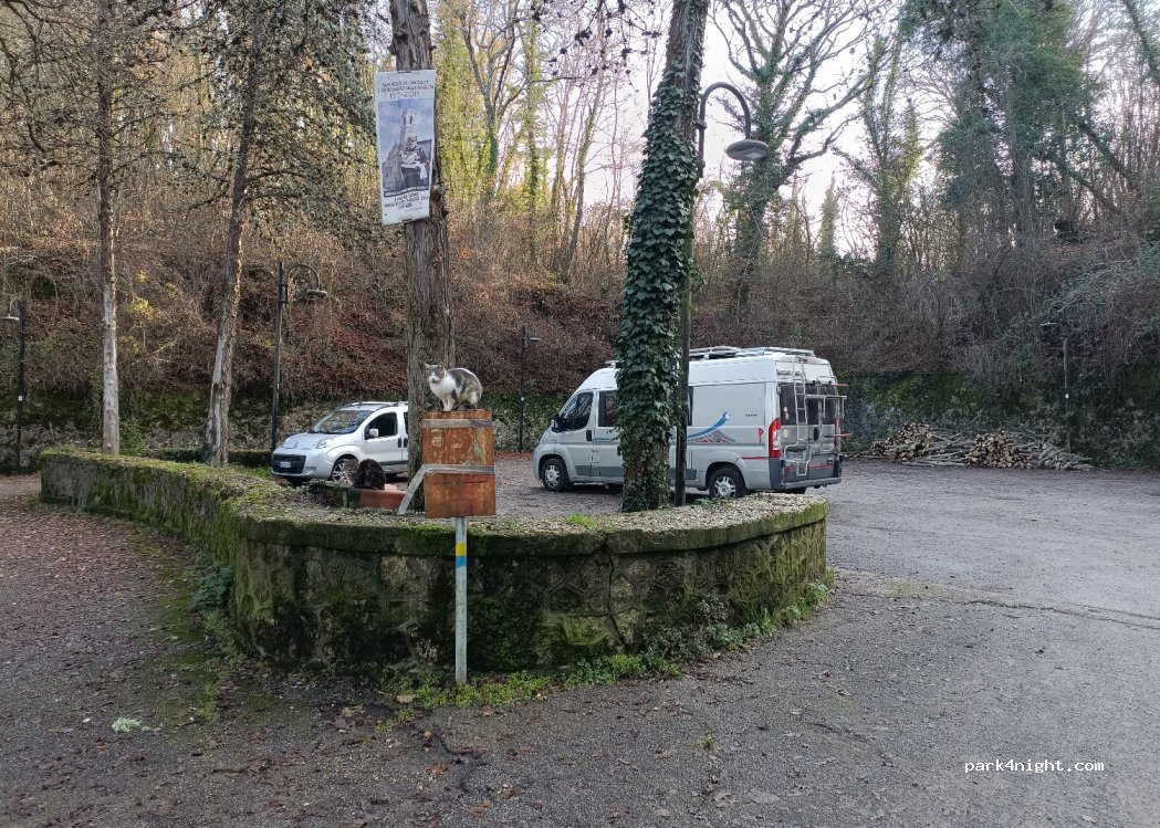 Parcheggio quasi in piano presso il vicino Santuario Francescano. Tranquillo e parzialmente ombreggiato. Presente colonia felina