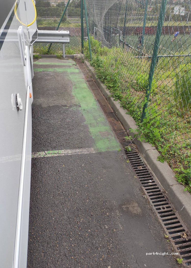 Sehr ordentliche Ver- und Entsorgungsstelle. Aber ist es richtig, dass das Grauwasser einfach in die Abwasserrinne am Rand laufen soll?