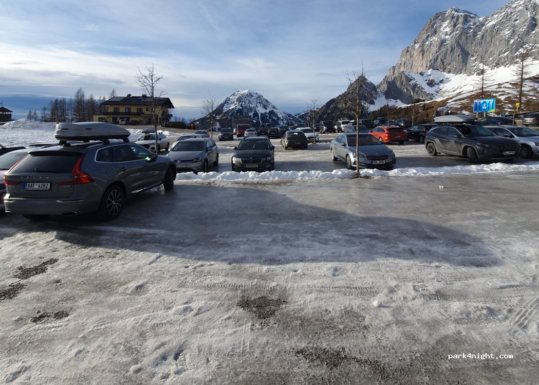 Idealer Ausgangspunkt um mit der Seilbahn auf den Dachstein zu fahren. Einfacher Parkplatz auf Sand. Kostenlos - nur der Weg dahin ist Mautpflichtig (kann man aber oben auf der Bergstation abstempeln lassen - dann kostenlos). Übernachten natürlich nicht erlaubt.