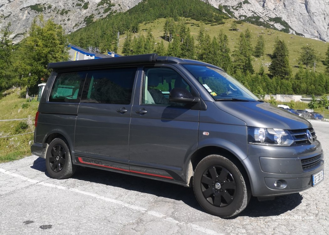 Grand parking pour le départ de la télécabine qui monte au Dachsteingletscher. On peut faire le pont suspendu et la passerelle dans le vide. La route est payante mais on peut valider le ticket en haut de la télécabine et on pourra la reprendre gratuitement. Camping interdit.