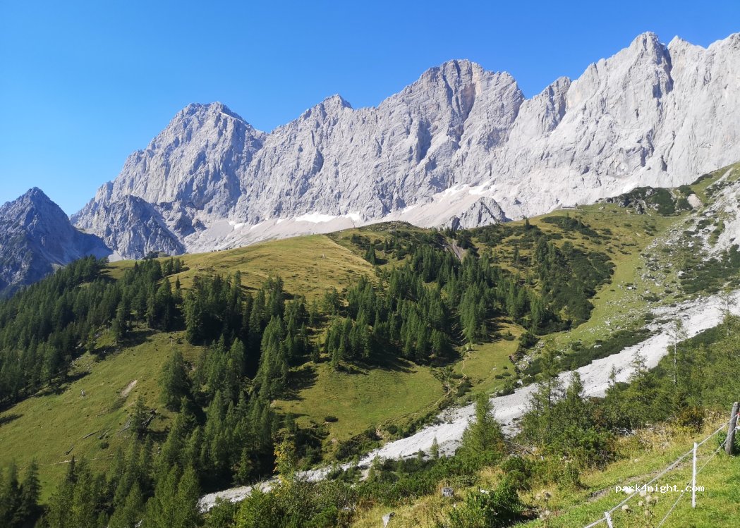 Large car park for the departure of the gondola which goes up to the Dachsteingletscher. You can build the suspension bridge and the footbridge in a vacuum. The road is paying but you can validate the ticket at the top of the gondola and you can take it back for free. Camping forbidden.