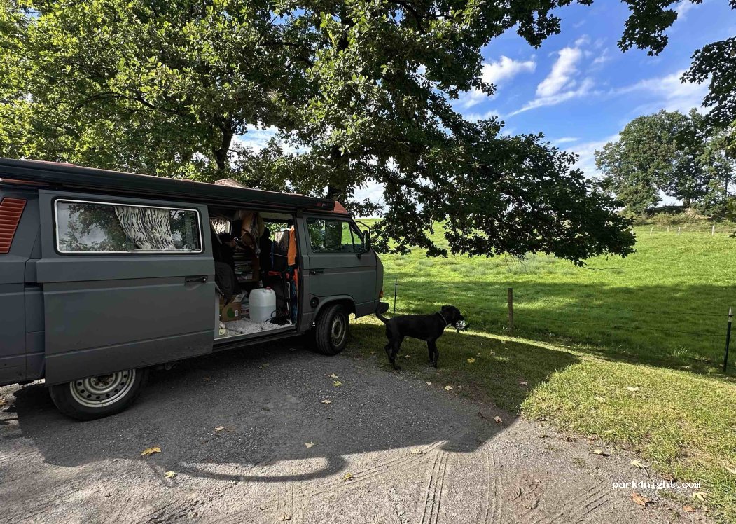 Ideal für eine ruhige Nacht. Beliebeter Parkplatz zum Gassi gehen, morgens sind viele Leute mit ihren Hunden vorbeigekommen. Waren aber alle sehr freundlich :)