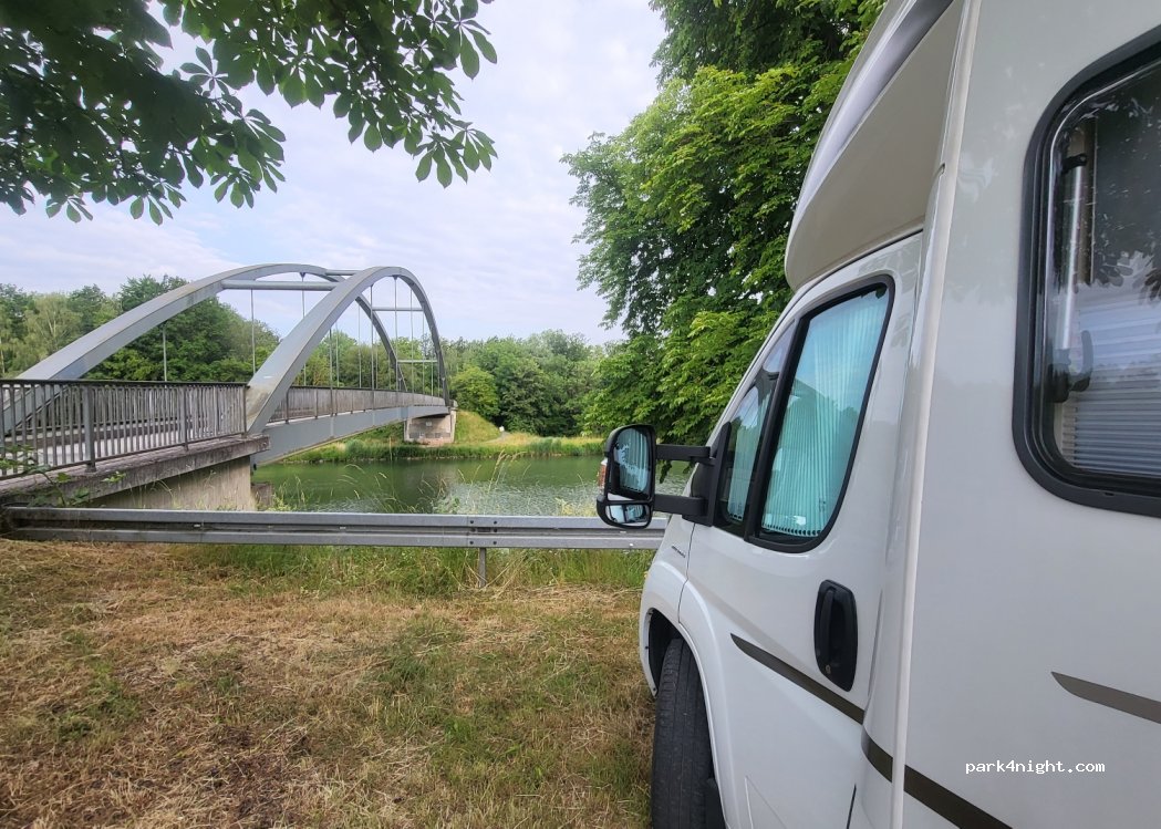 Direkt am Mittellandkanal gelegen und als Ausgangspunkt für Spaziergänge/Wanderungen bestens geeignet. Deshalb auch bei Einheimischen sehr beliebt. Es war ein ständiges Kommen und Gehen. Wir haben uns dennoch wohl gefühlt, sind zum Übernachten aber woanders hingefahren. Der Untergrund ist nicht geschottert, d.h bei Regen könnte es matschig werden.
