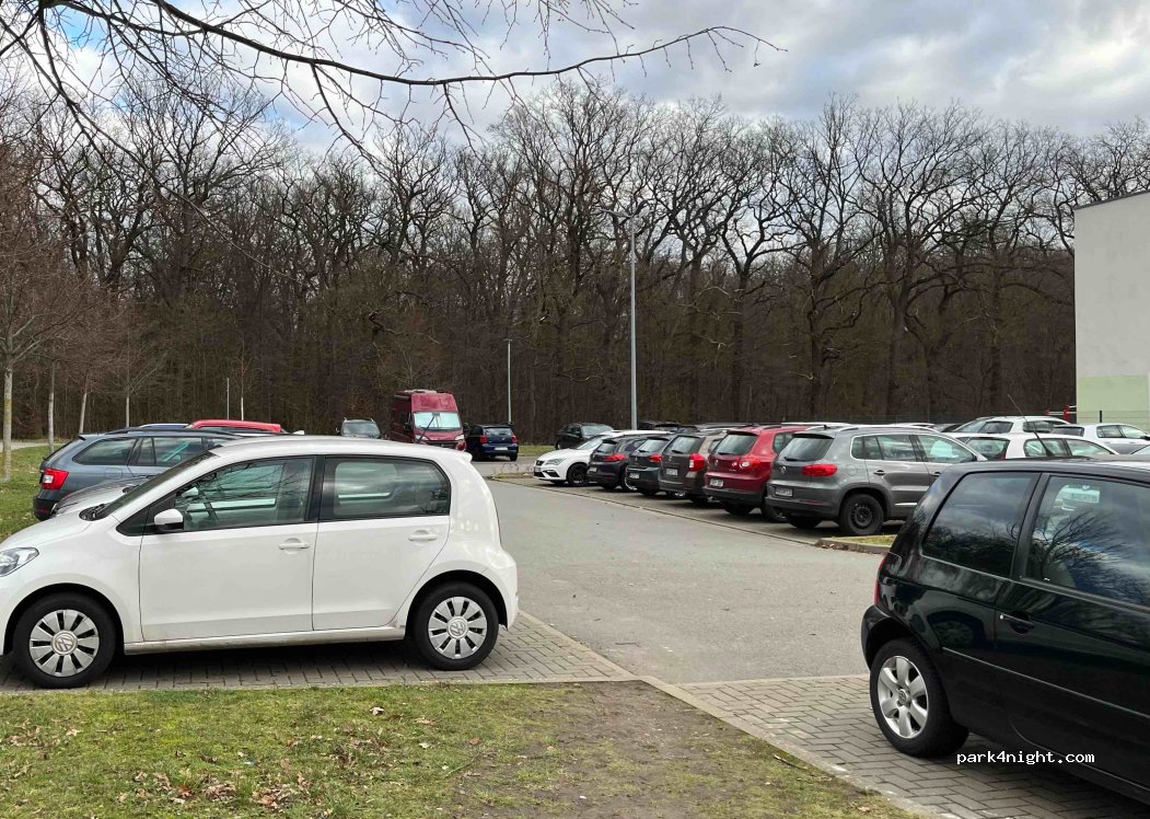 Small parking lot at the edge of the forest or at the edge of an industrial area, Wolfsburg Westhagen. No RV/overnight ban. Starting point for hikes, eg fountain and spring hike. Sauna, Rewe and Aldi 200m away.