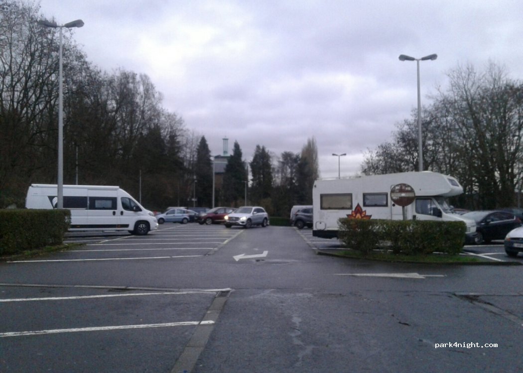 na een stevige helling naar boven heb je een zeer grote parkeerplaats die vooral door forenzen en werkenden door de week wordt gebruikt. Alleen in de verte hoor je de treinen dus snap niets van de geluidsoverlast. Politie reed savonds ook nog een keer over het terrein maar verder geen opmerkingen over gehad dat we met een camper van meer dan 3,5t op een parkeerplaats met max 3,5 t stonden.