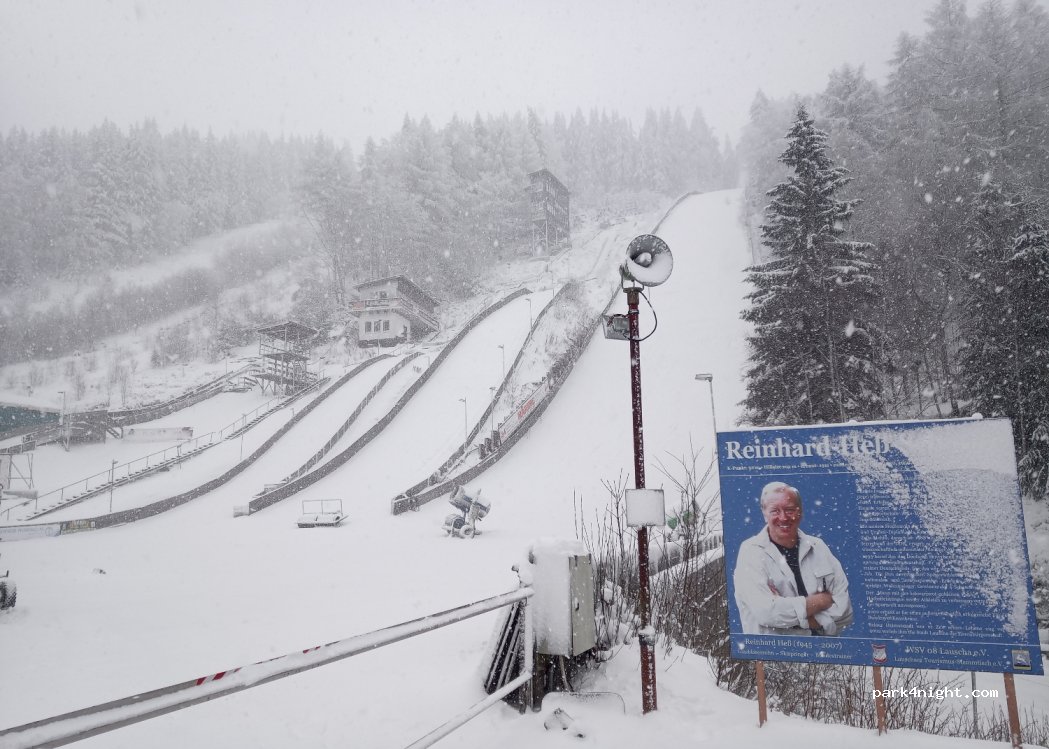Parking gratuit dans la ville verrière de Lauscha. À environ 5 minutes à pied de la Farglashütte et à 10 minutes à pied du centre avec des verreries. Les remontées mécaniques et la piste de luge d'été du quartier d'Ernstthal se trouvent à 5 minutes en voiture ou 15 minutes à pied. Les tremplins à ski du club de sports d'hiver de Lauscha se trouvent à proximité immédiate. Gasthof Brandt recommandé juste au bout du parking, ouvert du jeudi au samedi à partir de 17h30, le dimanche de 11h30 à 14h.