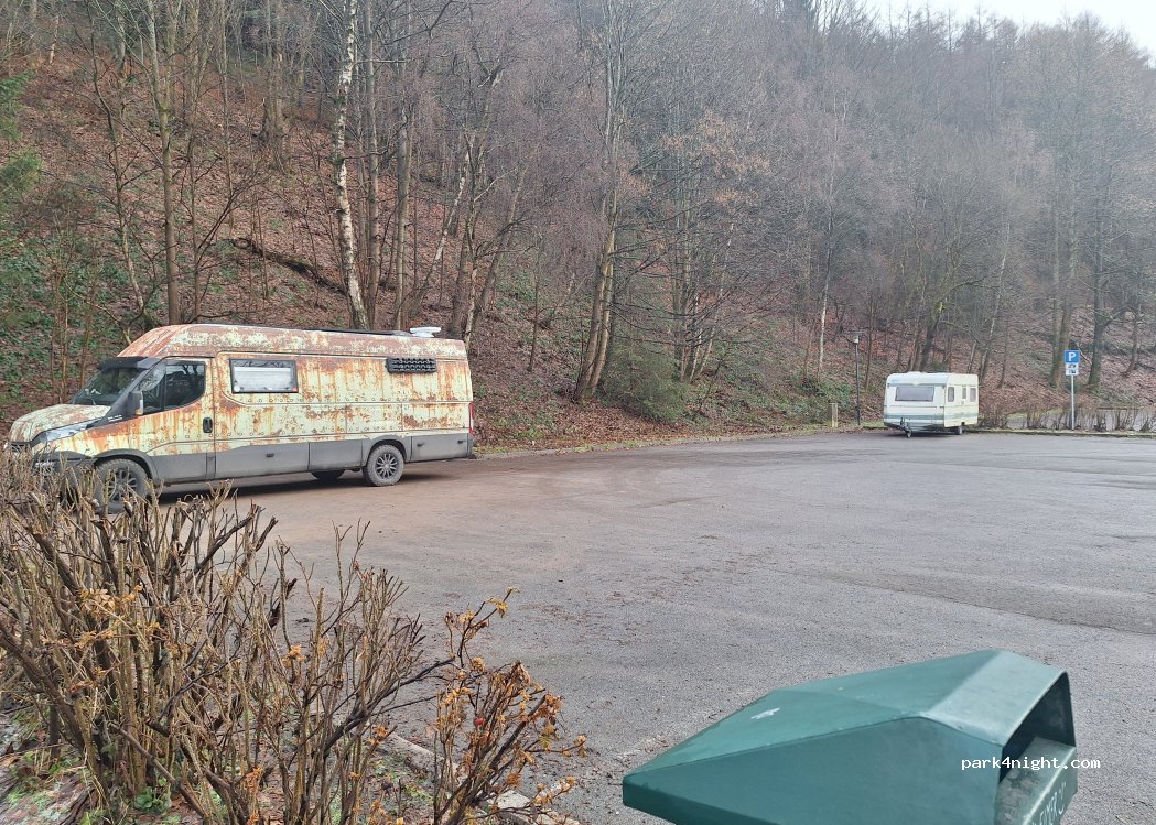 Platz ist leicht schräg lässt sich aber mit Keile gut ausgleichen. Ein Mülleimer ist vorhanden sonst weiter nichts. Wir haben den Platz für einen Tagesbesuch von Lauscha benutzt