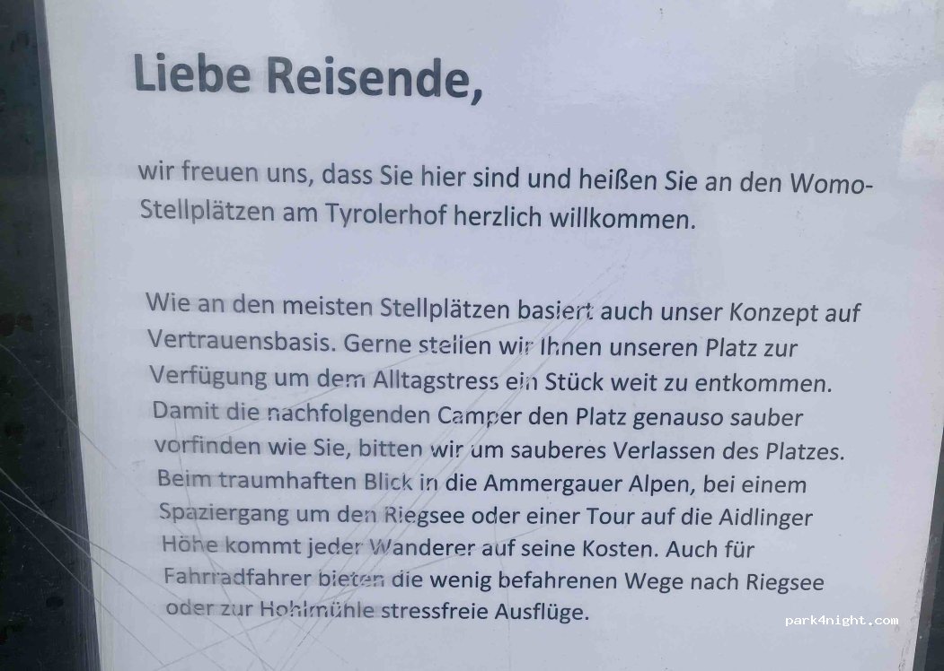Sehr schöner Platz für einen Abend. Kein Strom, kein Wasser, keine Toiletten. Kosten 10€ auf Vertrauensbasis. Wir bezahlen natürlich, damit noch mehr solcher Plätze entstehen und auch erhalten bleiben. Der Riegsee ist in 10min Fußlauf erreichbar, zum schwimmen perfekt! Achtung nur 3 Stellplätze, frühzeitig dort sein.