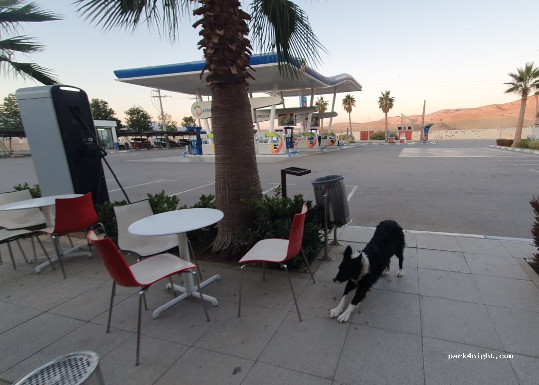 Parking lot at gas station Afriquia. There is free toilets and small cafe shop, good for night. It’s near A2 road. There is possible to wash your camper van too.
