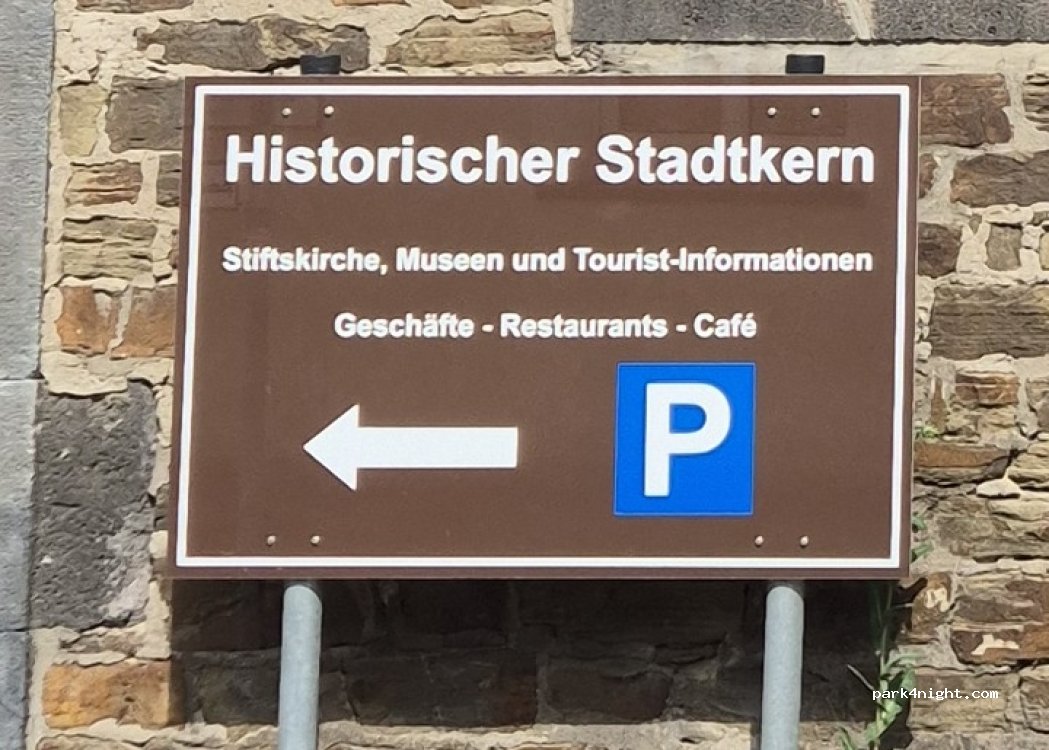 Petit parking à proximité de la caserne des pompiers sur le bord de la magnifique petite ville. Très proche de Château d’Eltz.