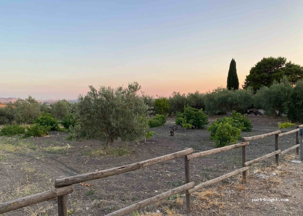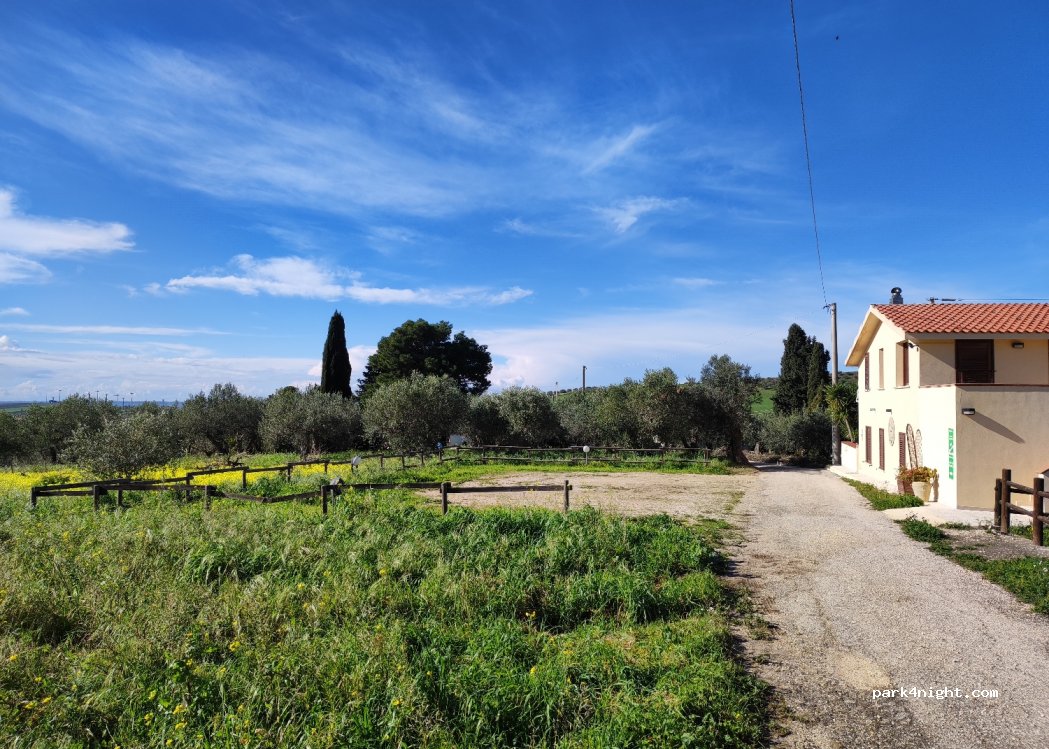 This is the parking lot of a camper-friendly restaurant, located on a hill among olive trees and vineyards, 1.5 km from the SS113 state road and 5 km from the A29dir motorway exit.
