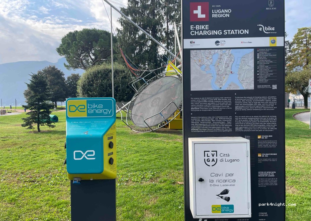 parking avec parcmetre en théorie ou gratuit si on fait comme les autres. nous avons mis un ticket 5franc chf pour 4 heures. a 6 kms de LUGANO. sur rte nationale. heureusement nous avions nos velos. du coup, très rapide et belle vue sur lac. sinon, gare à 5 mn à pied avec escale au centre-ville de LUGANO. Environ 5£ par personne par trajet