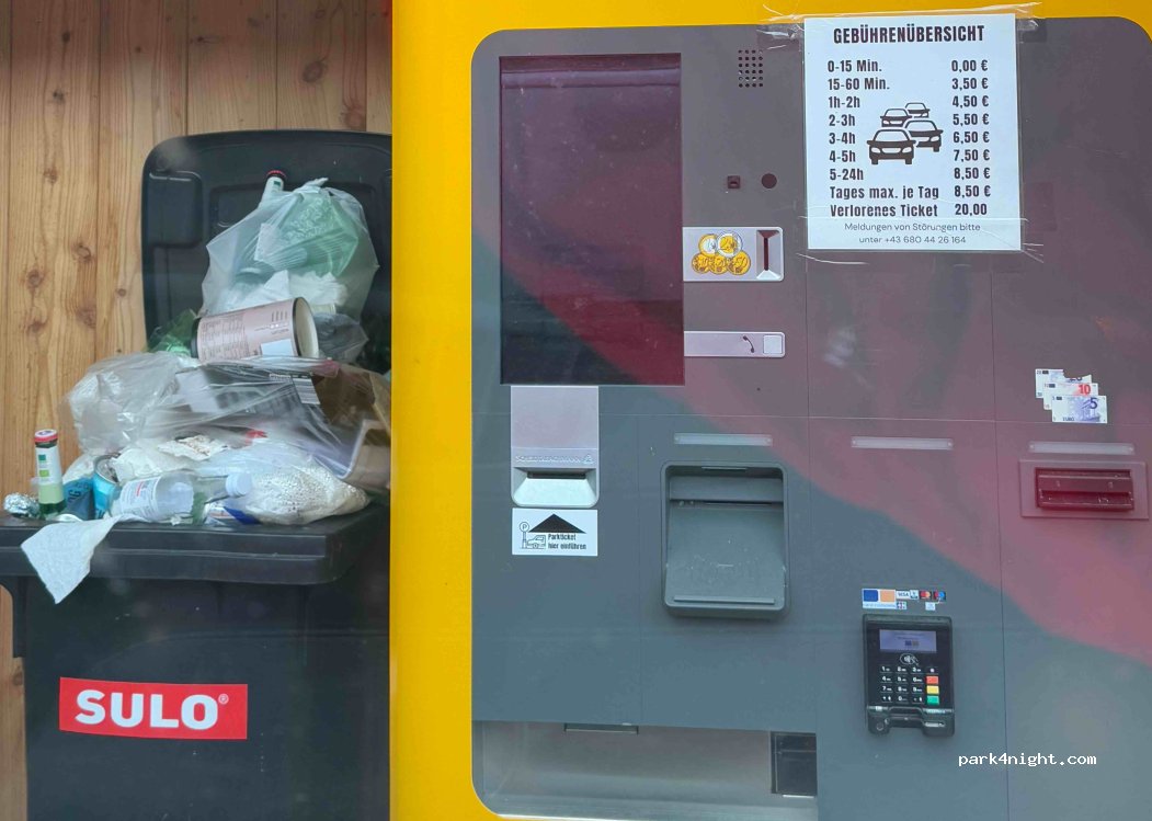schöner ruhiger Parkplatz (ich war alleine für die Nacht und habe kein einziges Auto gehört), die Zufahrt ist sehr steil. Die Einfahrt ist sehr eng da die Automaten sehr nah beim Schranken stehen, mit Alkoven muss man da aufpassen. aktueller Preis 8,50€/24h
