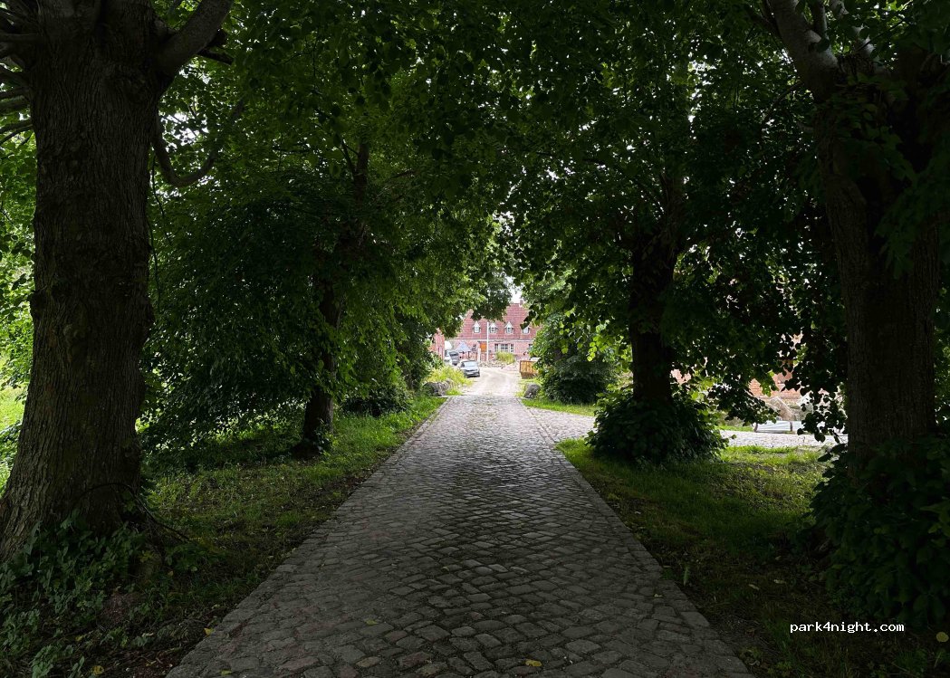 All'altezza della grande quercia con le lapidi commemorative, svoltate a sinistra in Lindenallee: è qui che si trova la nostra piazzola al Gut Dörphof.