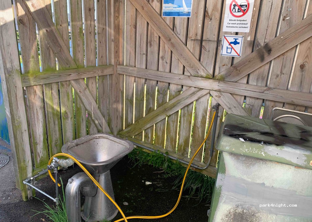 extraordinary service station. toilet and greywater disposal. for drinking water connect your own adapter with swedish standard. do not confuse drinking water with the flushing hose for buses or fixed tanks ;)