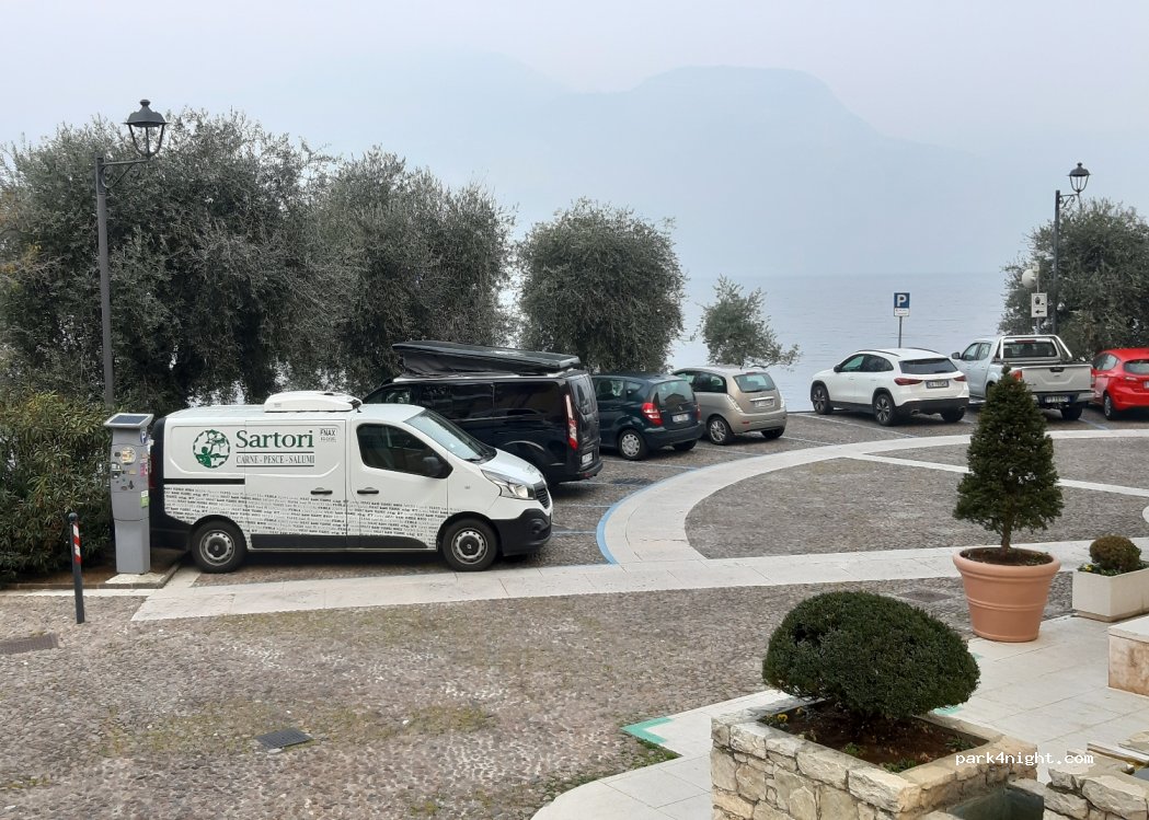 Parcheggio comunale in riva al lago, nessun divieto per le case mobili.
