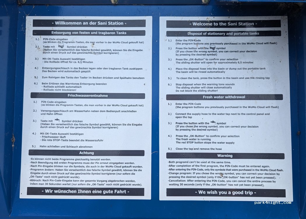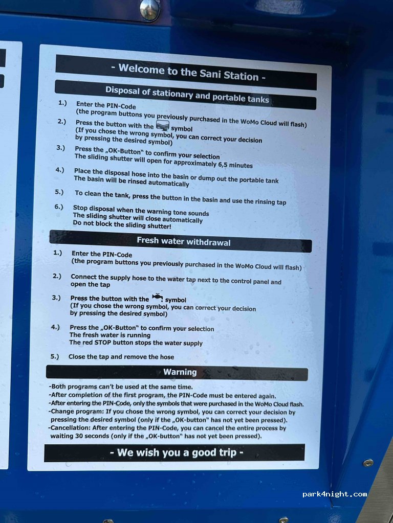 Venu juste pour faire le plein d'eau, impossible de trouver des renseignements sur le système WoMo cloud indiqué. Impossible de payer autrement, donc pas d'eau. Pourquoi faire simple quand on peut faire compliqué...
