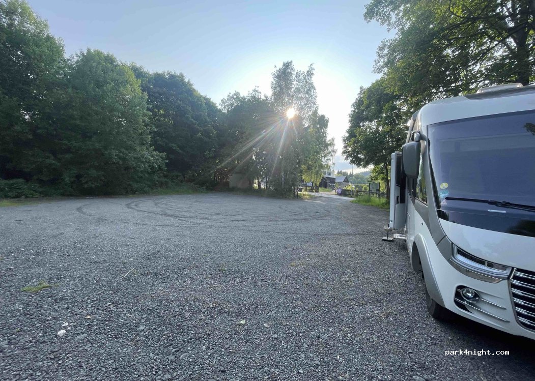 Parkplatz optimal nutzbar für Wanderungen oder Fahrradtouren. Eine Übernachtung sollte ohne Probleme klappen.
