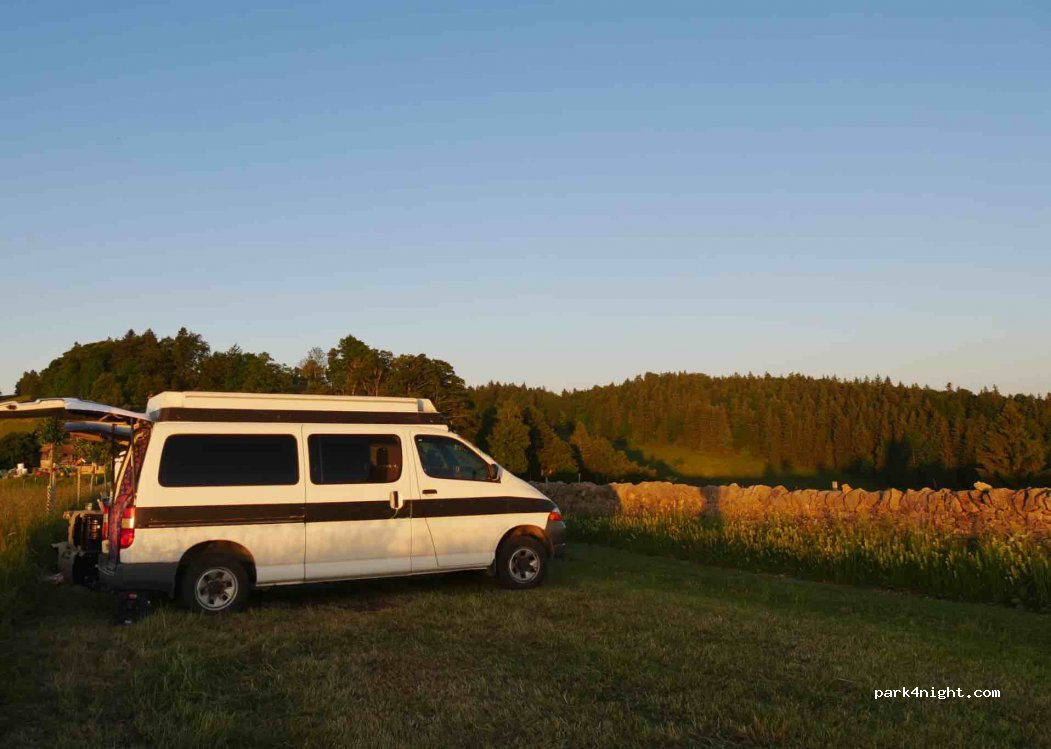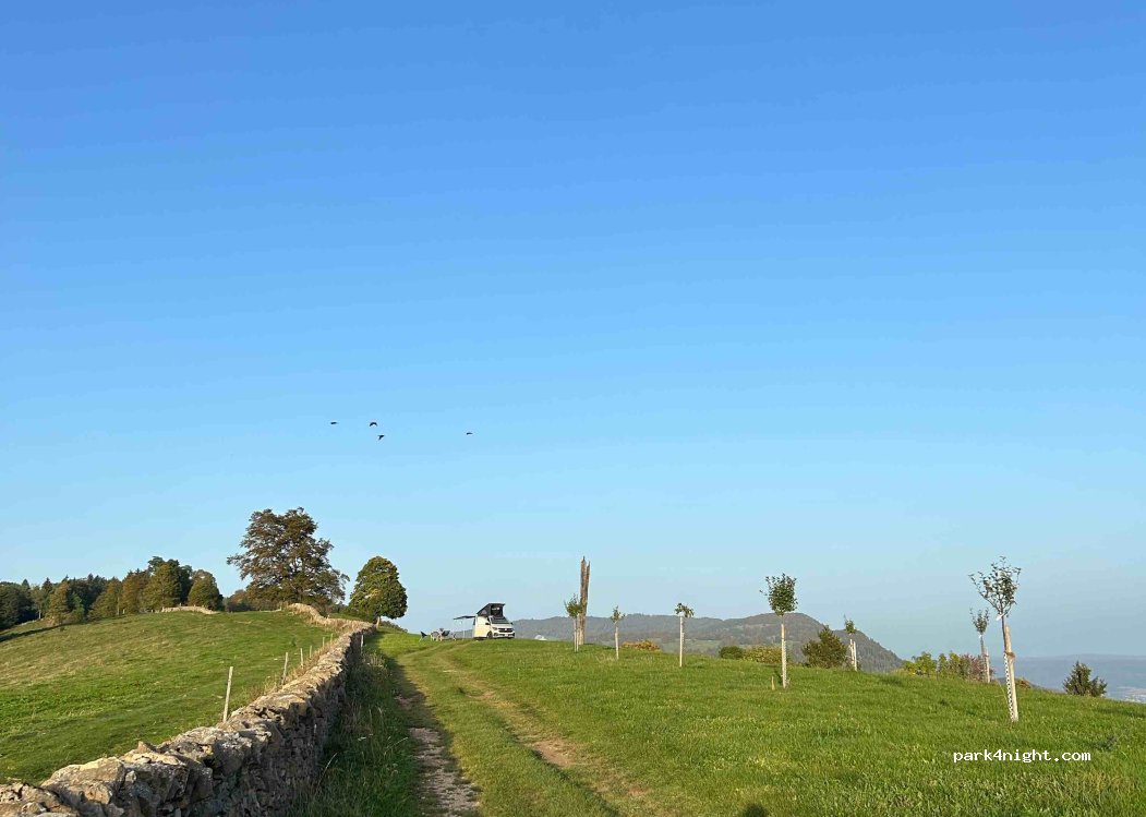 (Voranmeldung beim Landwirt erforderlich). Der Hof liegt auf der zweiten Jurakette mit einem atemberaubenden Panorama bis hin zu den Alpen. Vom Hof aus können verschiedene Wanderungen oder Radtouren mit tollen Ausblicken und verschiedenen Einkehrmöglichkeiten unternommen werden. Etwas schmale und steile Bergzufahrt - empfohlen für Camper bis maximal 7 Meter. Im Winter bei Schnee nur mit 4x4.