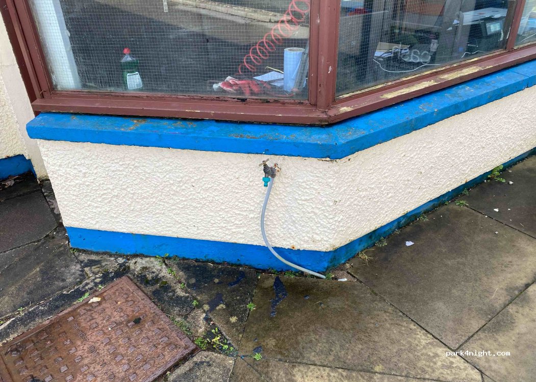 There’s a water tap with hose fitting at the 24 hour unmanned fuel station just opposite the spar. Plus a bin and toilets 100m up the road.