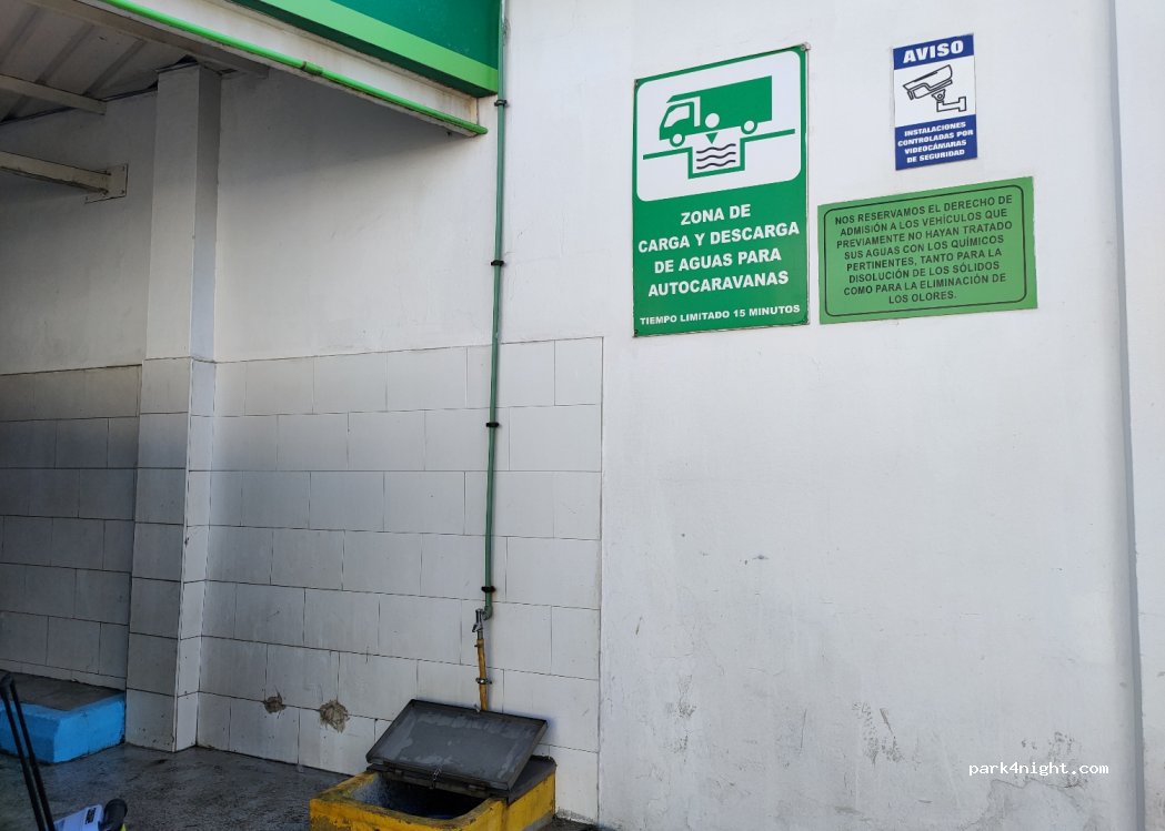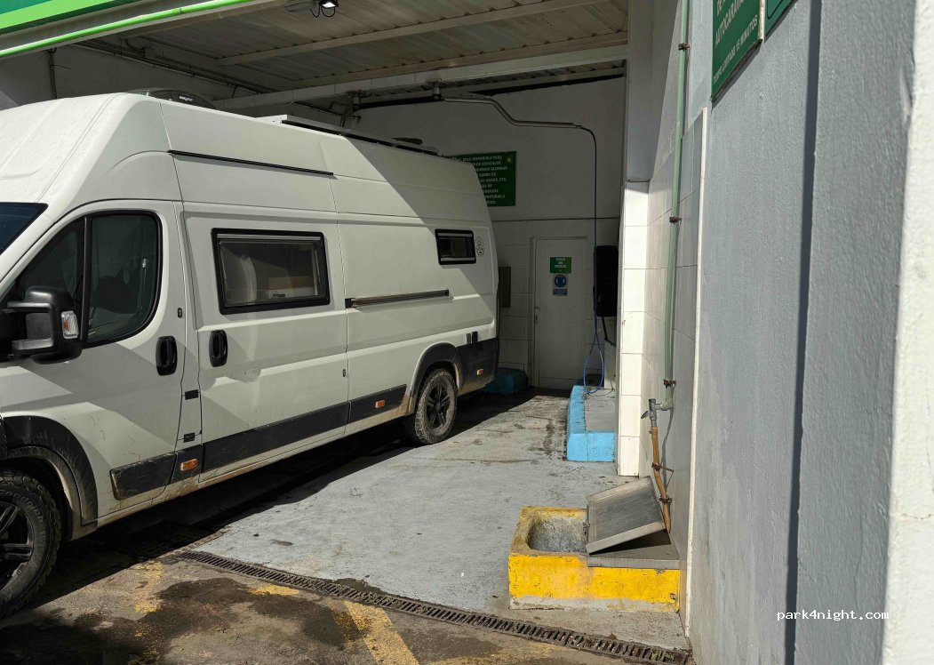 Si paga in cassa 4,5€ e si ha accesso per 15 mins al Lavado nr2 dove si possono scaricare acque grigie e nere (botola pulita e con uno “sciacquone” da tirare a fine scarico), in piu attivano l’acqua per riempire il van e sciacquare il potti. Gentilissimi