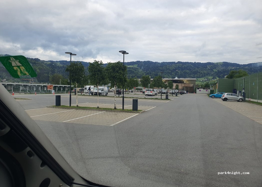 Le stationnement est gratuit et il y en a beaucoup. Bornes de recharge pour véhicules électriques Le restaurant est ouvert 24h/24, 7j/7, tout comme les toilettes et autres installations. Achat de Vignette routière par caissier ou automates. Grand endroit pour s'arrêter si vous voyagez. Superbe vue sur les montagnes mais le parking est proche de l'autoroute alors attendez-vous au bruit de la circulation.