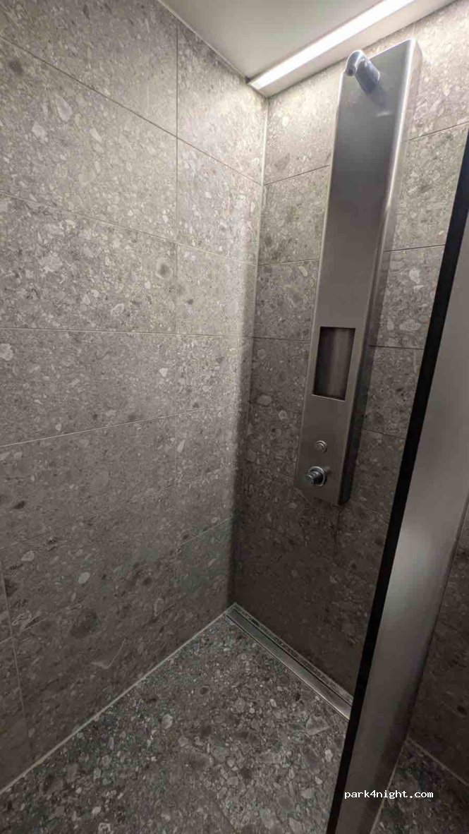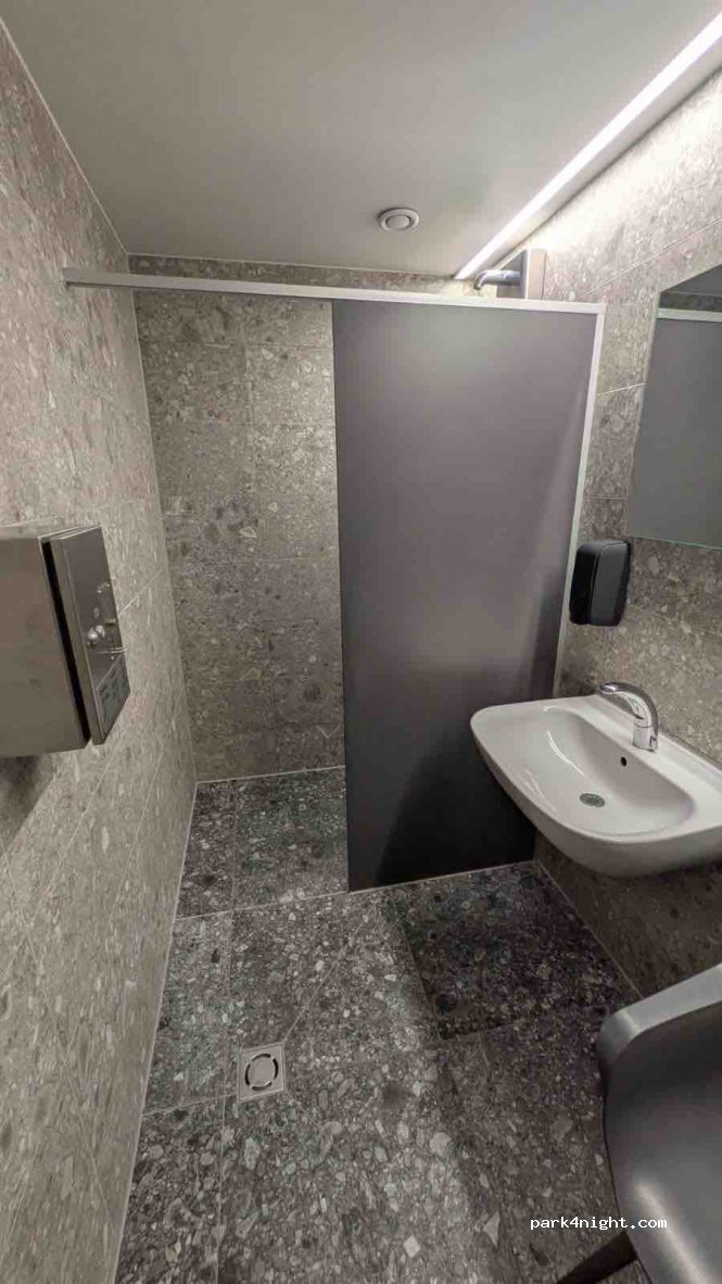 1/5 for the shower only, didn't try the rest You give an ID to get a key to enter the shower room, and a coin to start it. The shower is 5,00€ for 6 MIN ONLY, and it's not mentioned anywhere; even the guy who gave me the coin didn't mention it when I paid. BUT you also have to pay 0,70€ to cross the toilets barrier, because the showers are behind it. AND the pressure is so strong that it hurts.