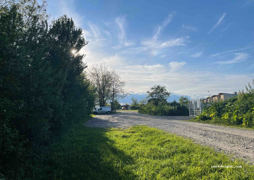 Parking ombragé à côté d'un grand espace canin clôturé. Endroit parfait pour 1 à 2 nuits sans problème Le robinet du parc à chiens fournit de l'eau fraîche d'avril à octobre. L'usine située juste derrière peut provoquer du bruit pendant la semaine. Mais ça ne marche pas toujours. Merci d'emporter vos déchets et de laisser de la place aux visiteurs du parc canin afin que les nuitées continuent d'être tolérées par la communauté !