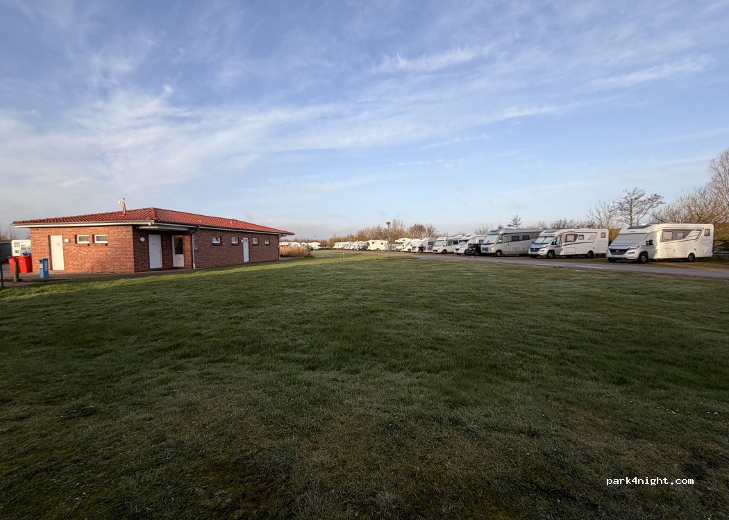 Proprietari/operatori simpatici, luogo curato. Appena fuori Norddeich, a circa 3 km dal centro. Piccolo negozio alla reception e servizio di pane quotidiano (ritiro dalle 8:30). Prossima possibilità di acquisto: il supermercato nel campo del Mare del Nord. Sono possibili bellissimi tour in bicicletta sulla diga. I posti possono essere prenotati per tre o più notti, quindi prenota in anticipo durante la stagione e nei fine settimana per telefono o semplicemente online tramite la homepage. Il posto è ghiaioso, con il bel tempo ci sono ulteriori posti auto sul prato. Ci sono servizi igienici, docce, lavapiatti e impianti di lavaggio, quindi è più simile a un campeggio che a una piazzola per camper. VE possibile anche acqua nera (ingresso dal basso), acqua 10l o 100l a pagamento. Tassa di soggiorno a persona.