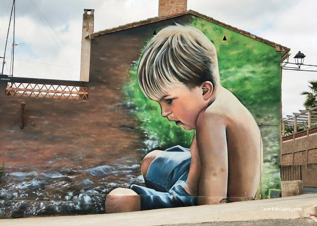 Emplacement parfait, merci à la ville. Pour visiter la vingtaine de murs peints de Geldo, il existe "la ruta de los murales" sur wikiloc ; car le QRcode présent à l'entrée de l'aire n'ouvre aucun site internet.
