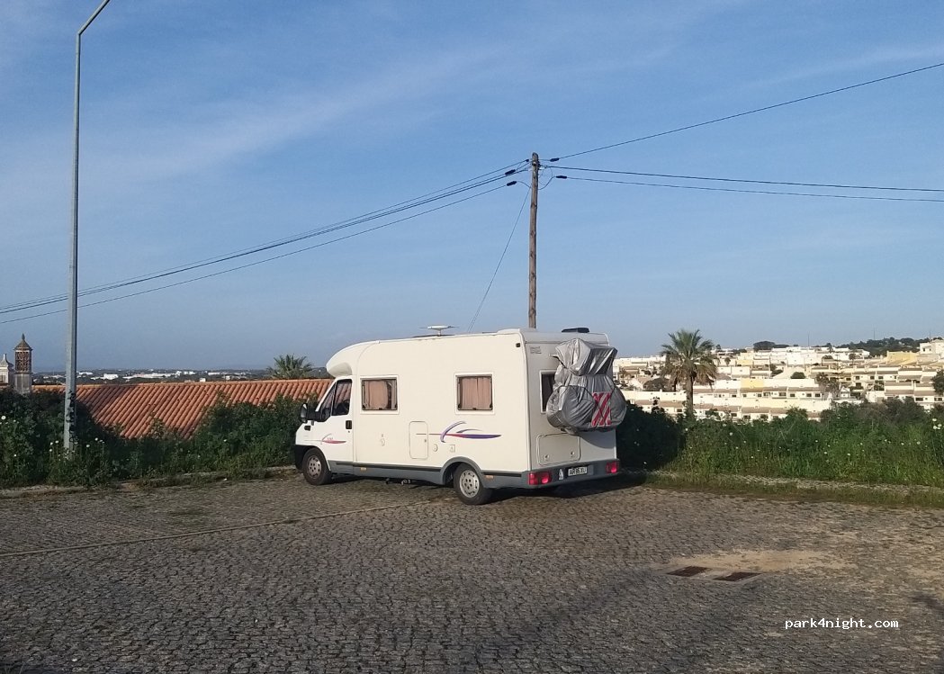Car park. Quiet area with a very nice view. Good for spending the night. Good public lighting. Supermarket, leisure and sports park and restaurants 100 meters away. Bus stop 50 meters away to visit Albufeira Old Town. We have stayed several times at this park. I recommend!